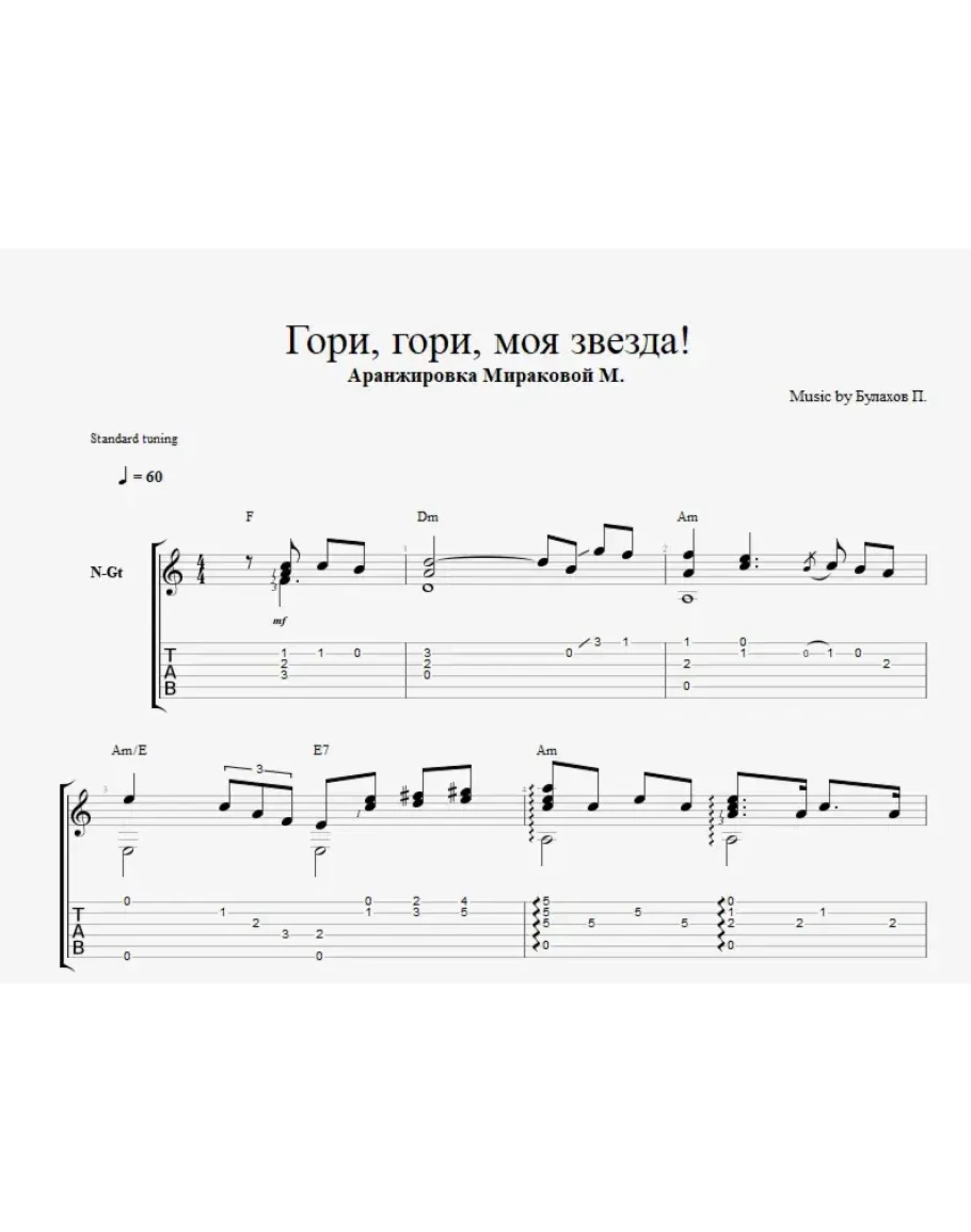 Аранжировка для шестиструнной гитары от Марины Мираковой на романс "Гори гори моя звезда". Композитор Пётр Петрович Булахов.
