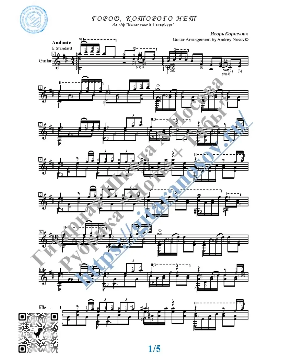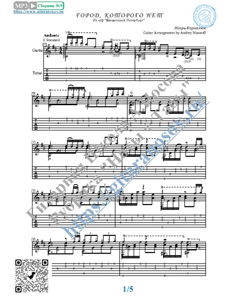 Товар включает в себя ноты с табулатурой и без табулатуры (в одном PDF). Прилагается ссылка на прослушивание / скачивание mp3.