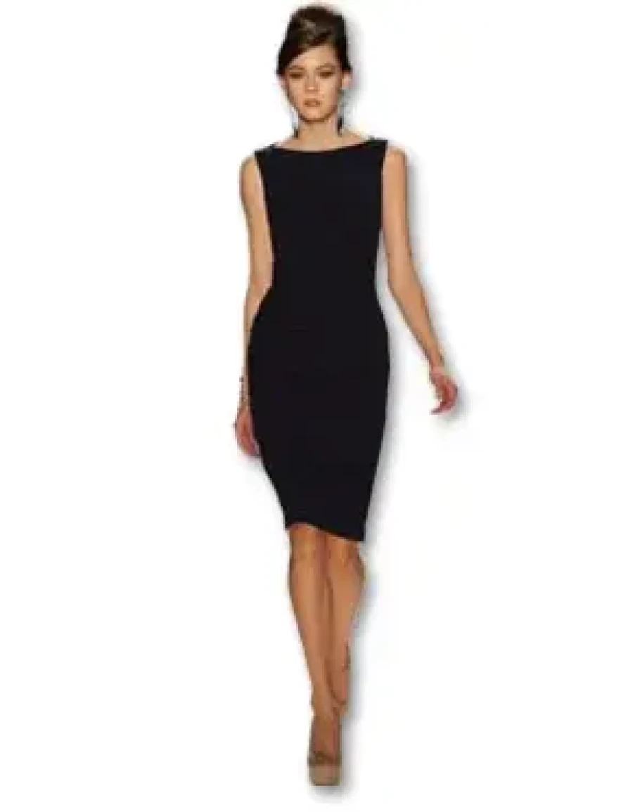 Готовая выкройка модного платья-футляр с открытой спиной. Застежка-молния в среднем шве спинки обеспечивает плотное прилегание, подчеркивая стройность фигуры.
