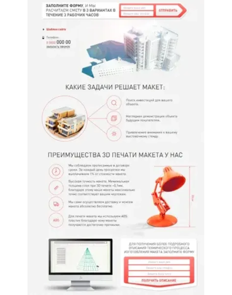 Лендинг пейдж состоящий из 11 визуальных блоков. Особенности шаблона: форма обратной при прокрутке всегда вверху экрана.