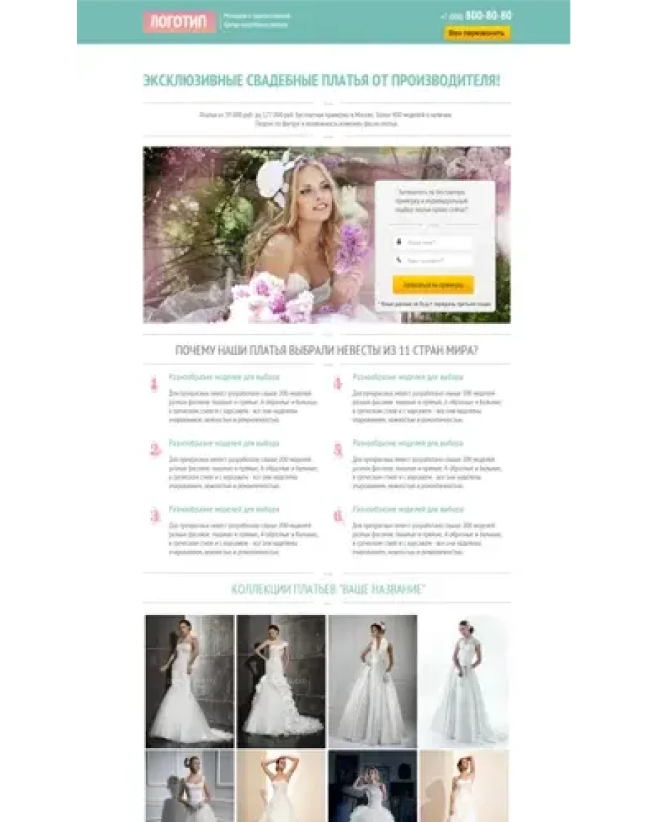 Лендинг пейдж состоящий из 9 визуальных блоков.