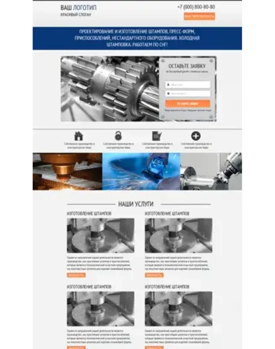 Лендинг пейдж состоящий из 5 визуальных блоков.
