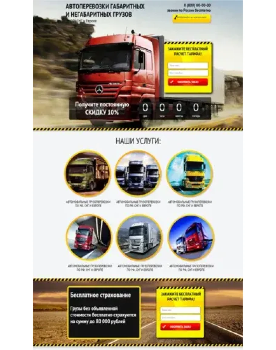 Лендинг пейдж состоящий из 7 визуальных блоков.