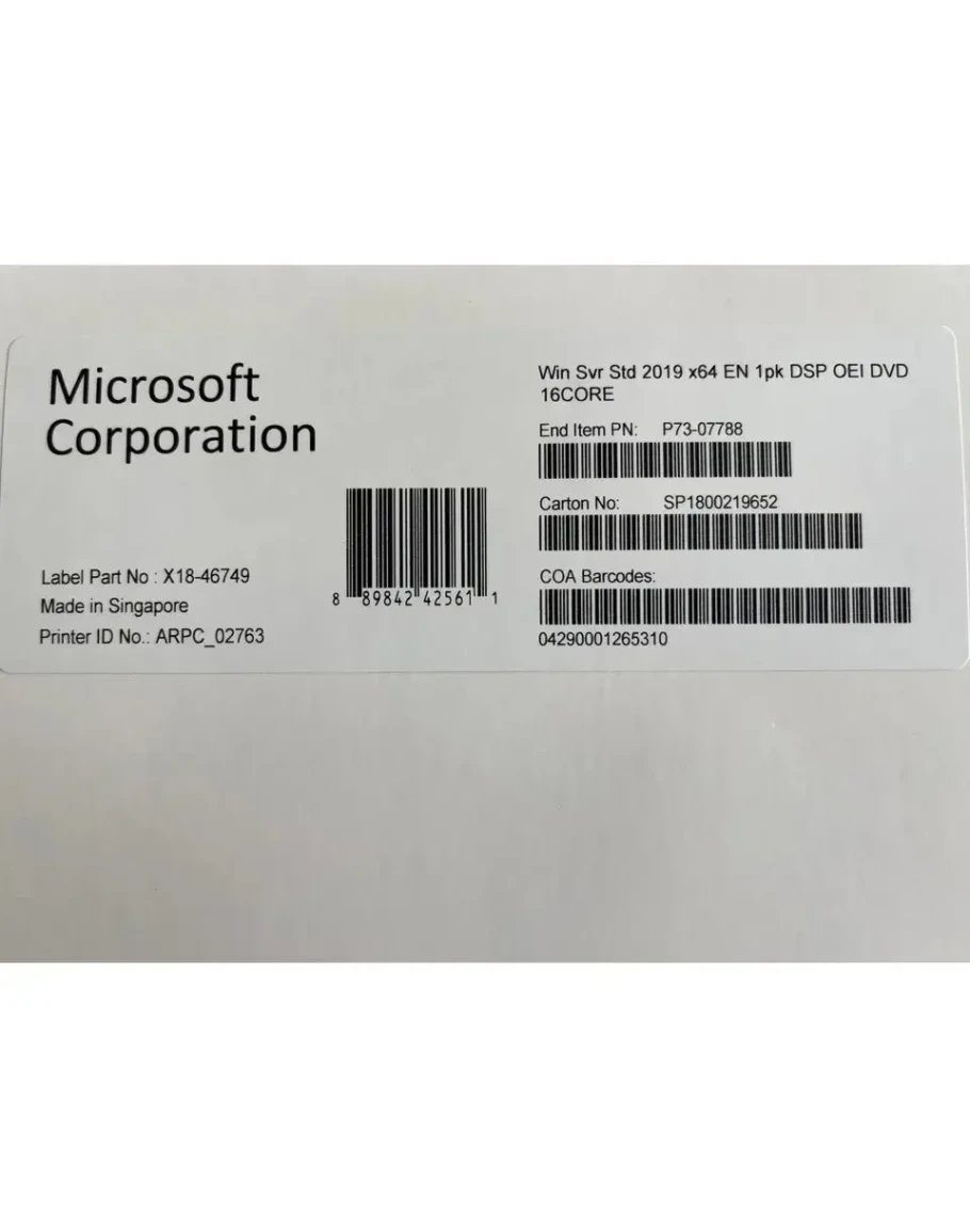 Возможна поставка данной лицензии в формате Windows Svr Std 2019 64 Bit 1pk DSP OEI DVD 16 Core