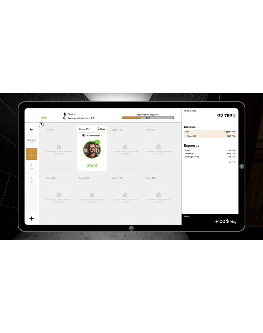 Дай волю фантазии и построй отель своей мечты! Возьми на себя роль дизайнера и преобрази ветхую гостиницу в настоящий магнит для туристов. Управляй услугами и оформляй номера, роскошь которых затмит Золотой век. Получи пять звезд!