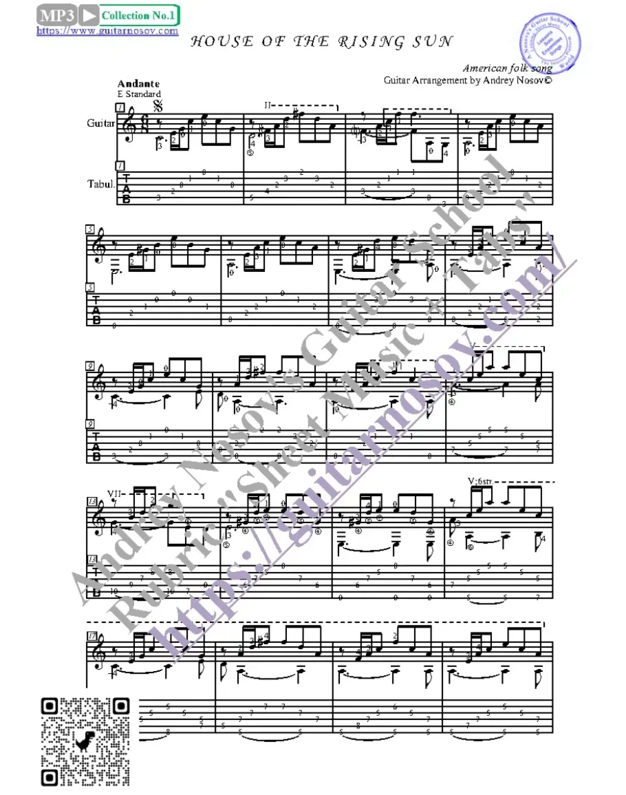 Товар состоит из двух частей (pdf / png*): 1 – Ноты с табулатурой; 2 – Ноты без табулатуры. Прилагается ссылка на скачивание mp3.