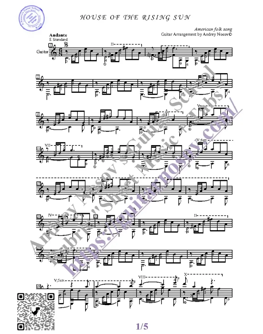 Кликните "Подробнее" для получения дополнительной информацииВашему вниманию предлагается композиция "House of the Rising Sun (The Animals)", предназначенная для исполнения на 6-ти струнной гитаре СОЛО. Запись выполнена нотами, сопровождена подробнейшей аппликатурой и продублирована табулатурой. И ещё...