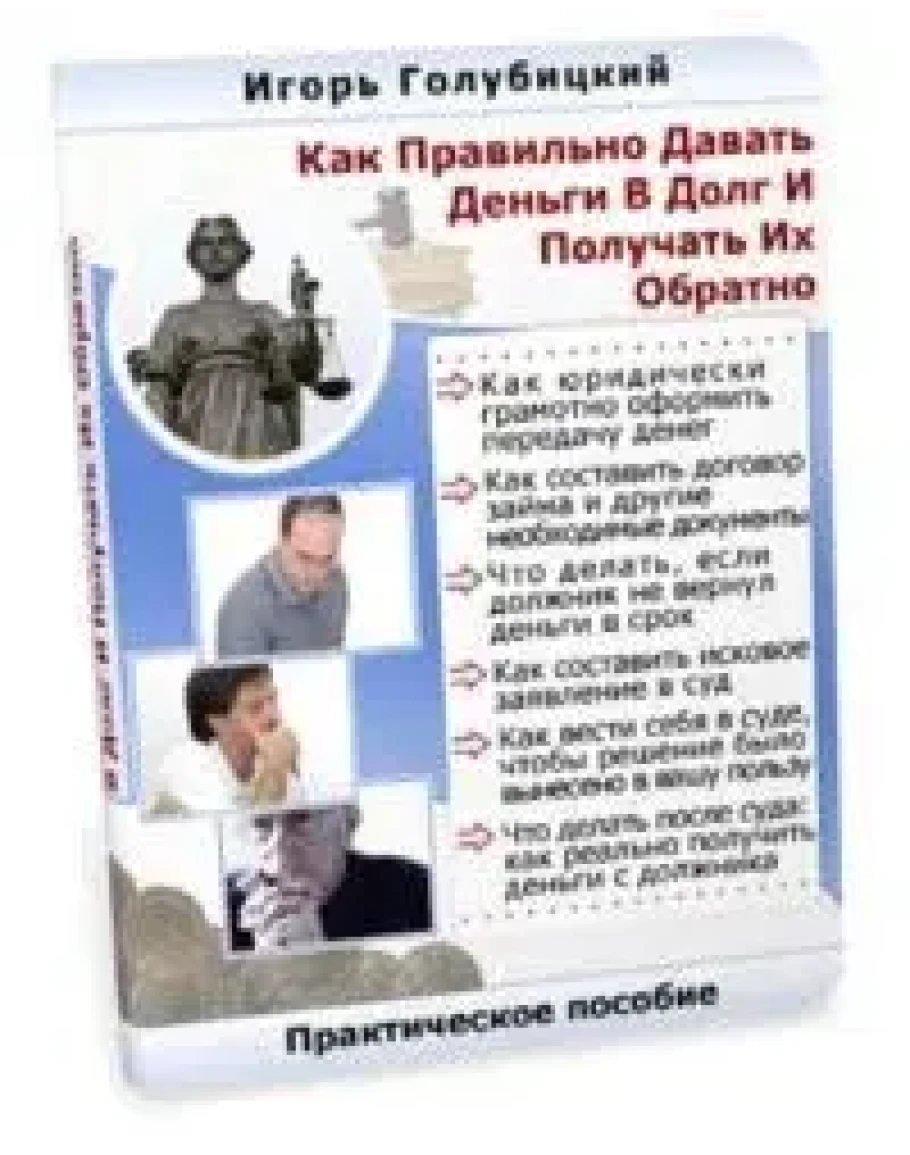 В этой книге я НЕ предлагаю Вам теоретические знания и набор статей законодательства. Я предлагаю Вам свой ПРОФЕССИОНАЛЬНЫЙ ОПЫТ и опыт моих коллег по РЕАЛЬНОМУ взысканию долгов и юридически грамотному оформлению передачи денег в долг. Кроме всего прочего, книга написана простым и доступным языком, и рассчитана на самую широкую аудиторию. Наконец, цена книги НИЖЕ, чем РАЗОВАЯ консультация юриста.