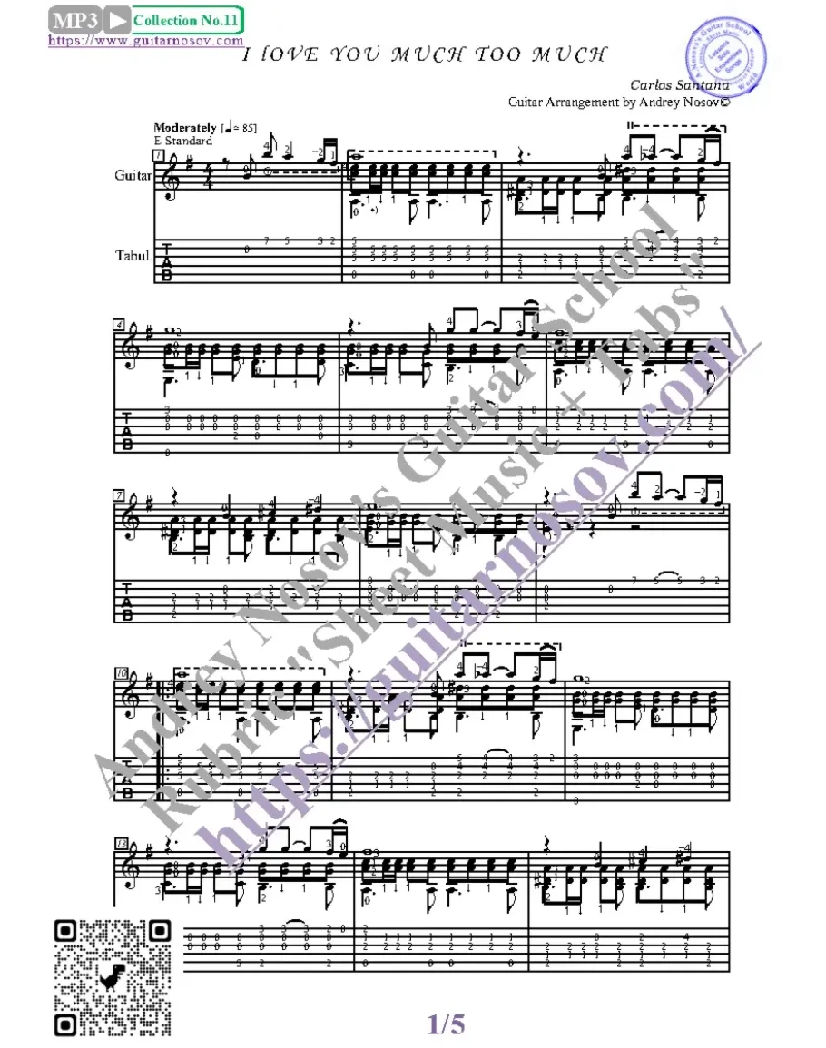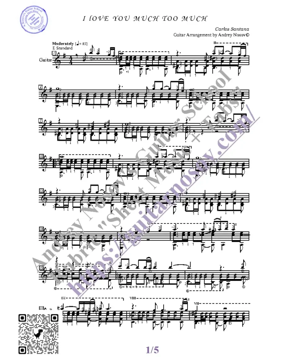Кликните "Подробнее" для получения дополнительной информацииВашему вниманию предлагается композиция "I Love You Much too Much (C.Santana)", предназначенная для исполнения на 6-ти струнной гитаре СОЛО. Запись выполнена нотами, сопровождена подробнейшей аппликатурой и продублирована табулатурой.