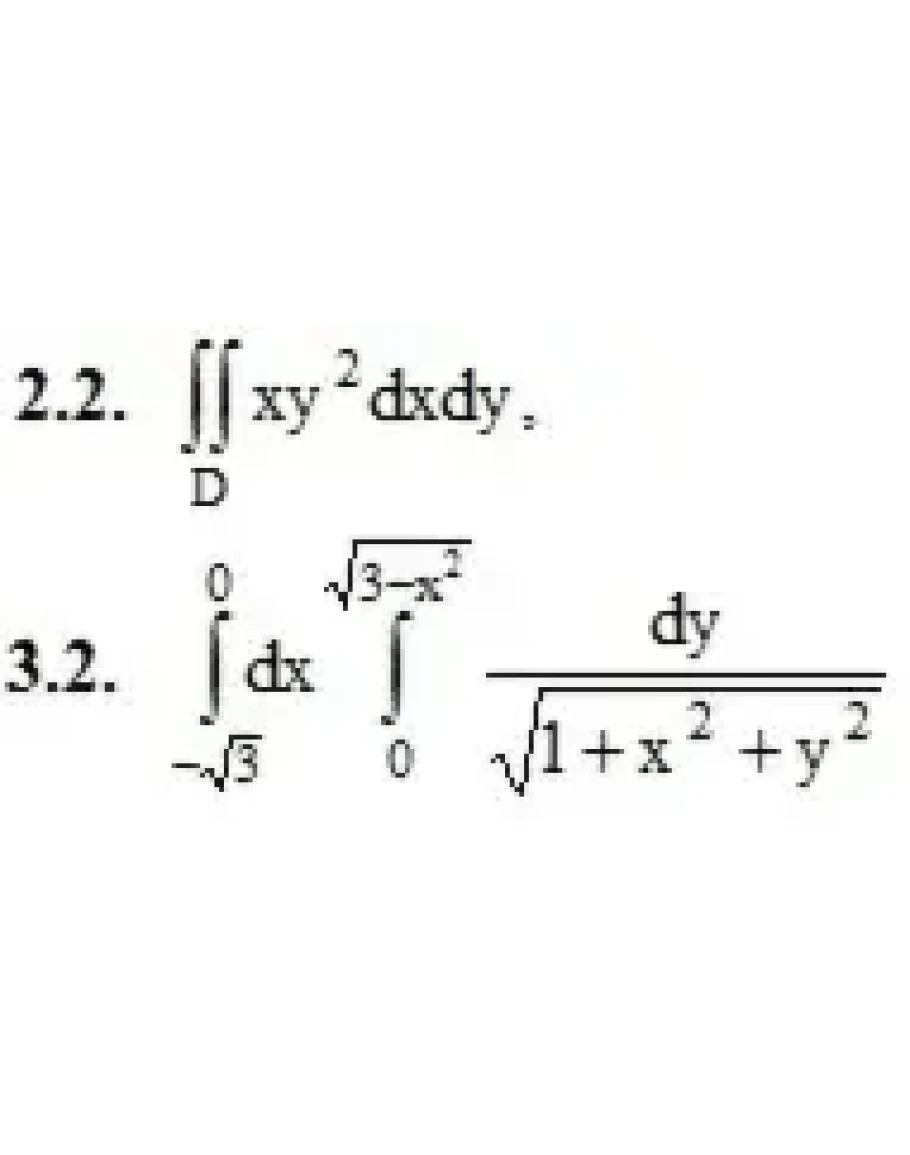1. Представить двойной интеграл в виде повторного интеграла с внешним интегрированием по х и внешним интегрированием по y, если область D задана указанными линиями.