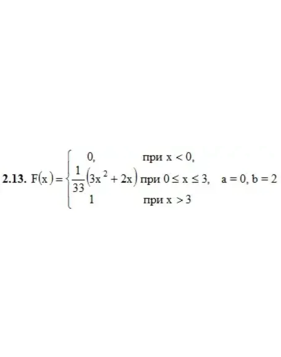 2. Дана функция распределения F(х) СВ X. Найти плотность распределения вероятностей f(x), математическое ожидание М(X), дисперсию D(X) и вероятность попадания СВ X на отрезок [а; b]. Построить графики функций F(х) и f(x).