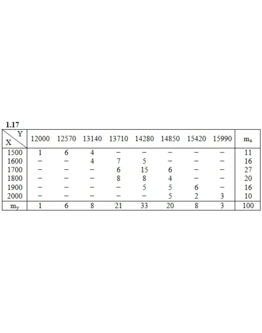 Дана таблица распределения 100 заводов по производственным средствам X(тыс. ден. ед.) и по суточной выработке Y(т). Известно, что между X и Y существует линейная корреляционная зависимость. Требуется: