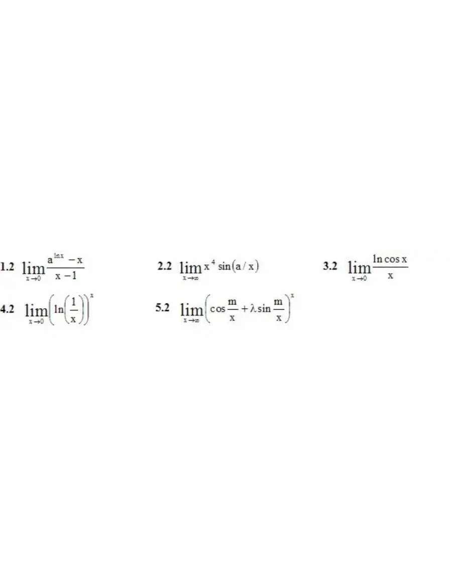 1. Найтиуказанные пределы, используя правило Лопиталя. (1-5)