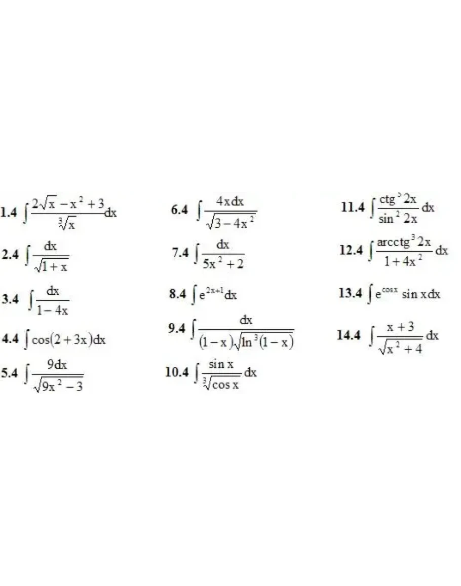 1. Найти неопределенные интегралы (в заданиях 1-5 результаты интегрирования проверить дифференцированием). (1-14)