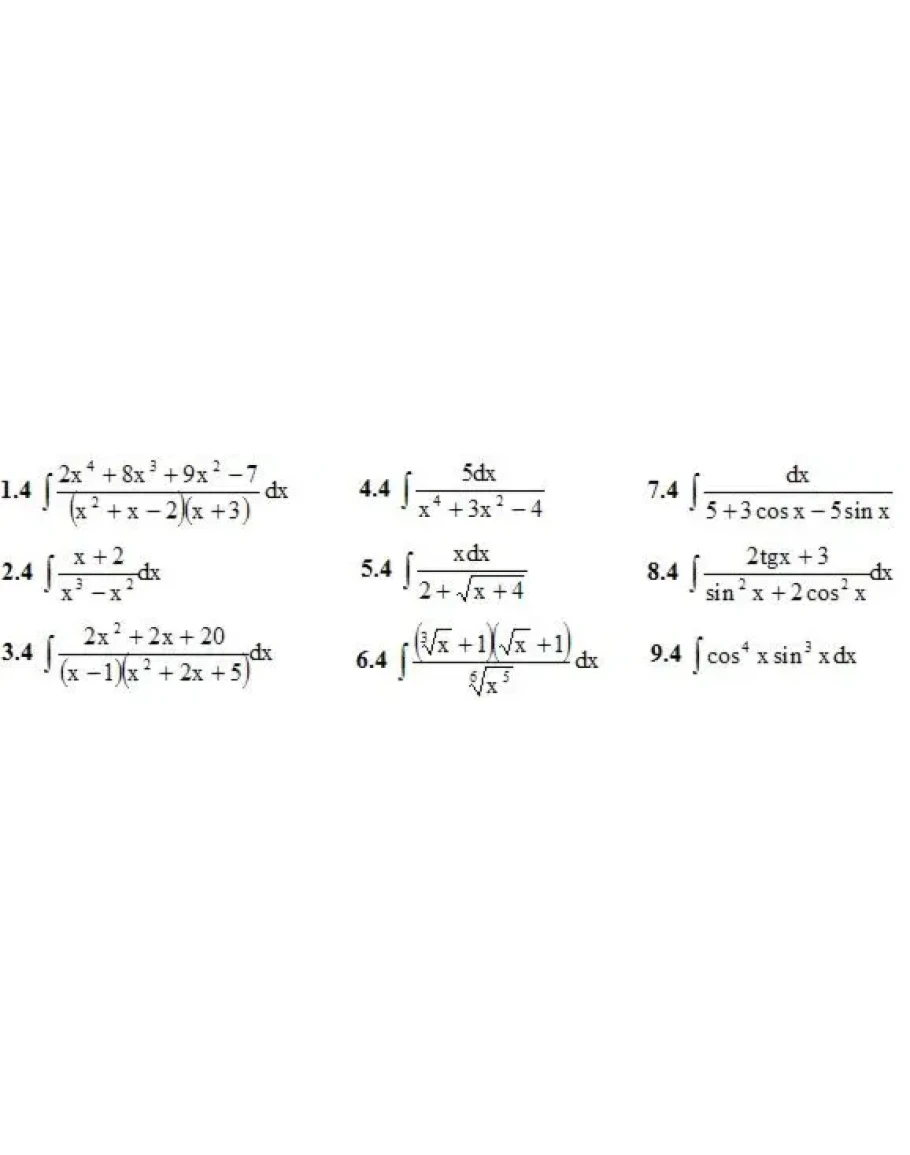 1. Найти неопределенные интегралы. (1-9)