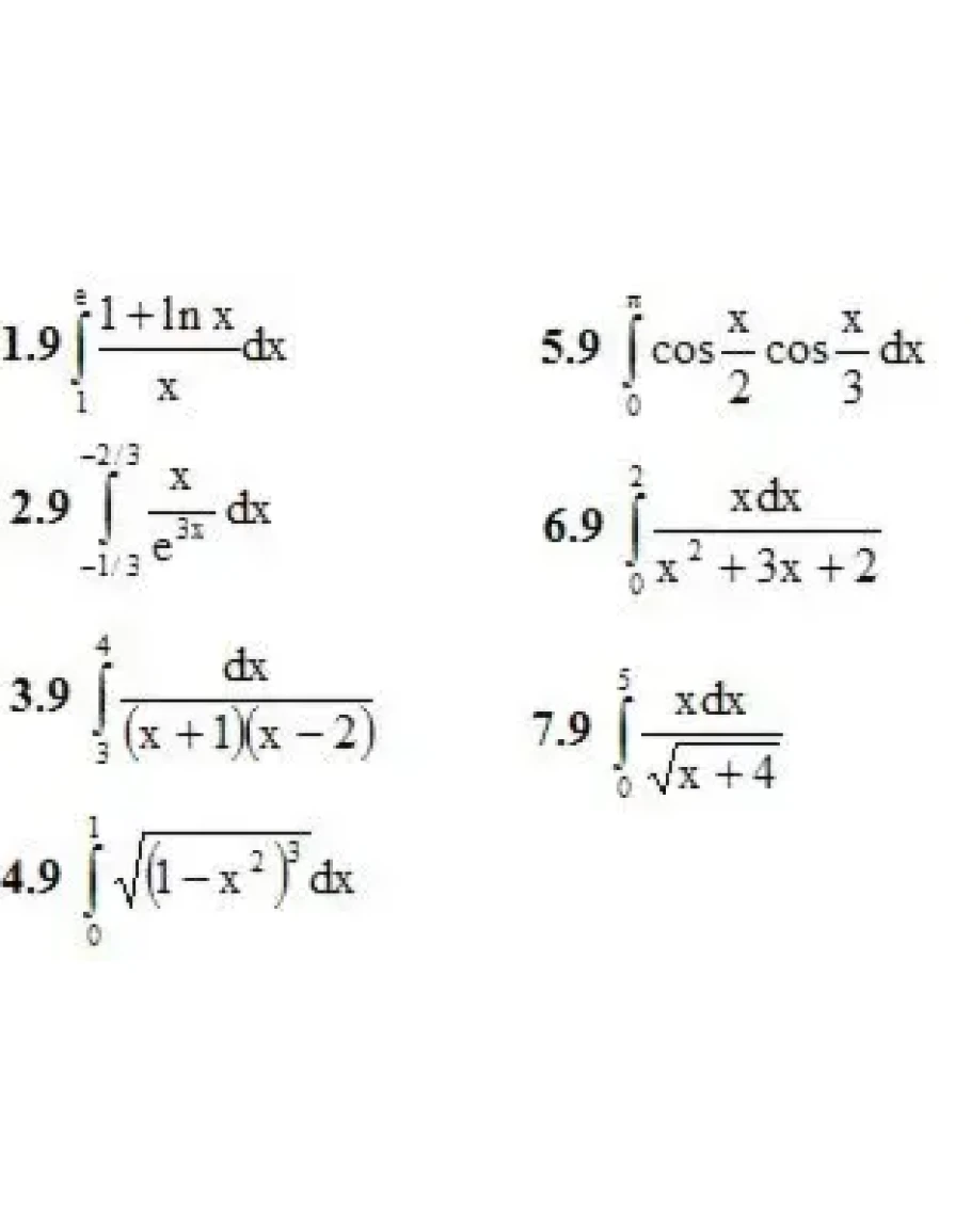 1. Вычислить определенные интегралы с точностью до двух знаков после запятой. (1-7)