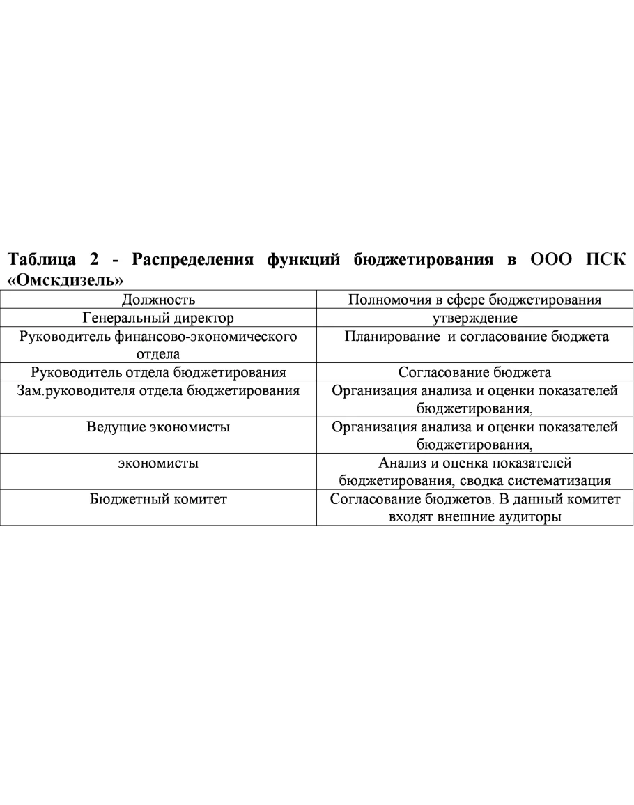 Таким образом, в принятии бюджетов будут принимать руководители всех структурных подразделений ООО ПСК «ОМСКДИЗЕЛЬ» 58