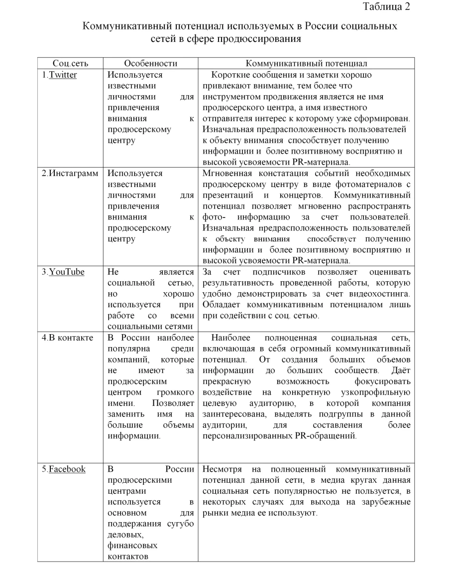 2.1. Мировой и отечественный опыт использования социальных сетей и их коммуникативного потенциала при продвижении продукции и услуг предприятий в сфере продюссирования. 32