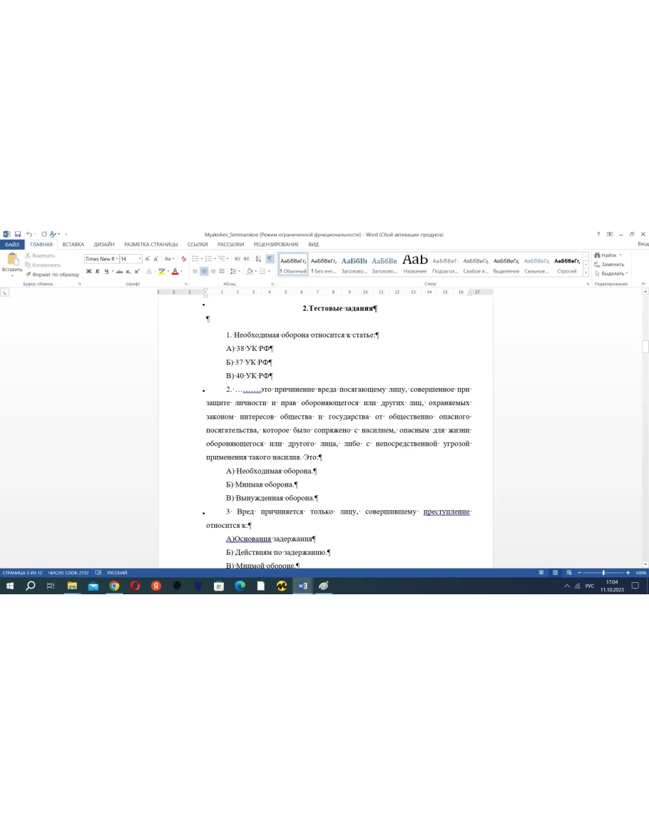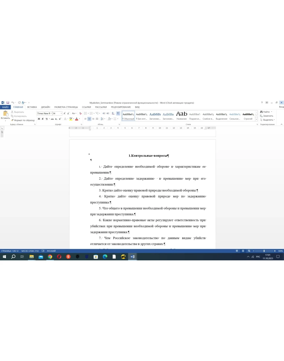 по теме: «Ответственность за убийство, совершенное при превышении пределов необходимой обороны либо при превышении мер, необходимых для задержания лица, совершившего преступление»