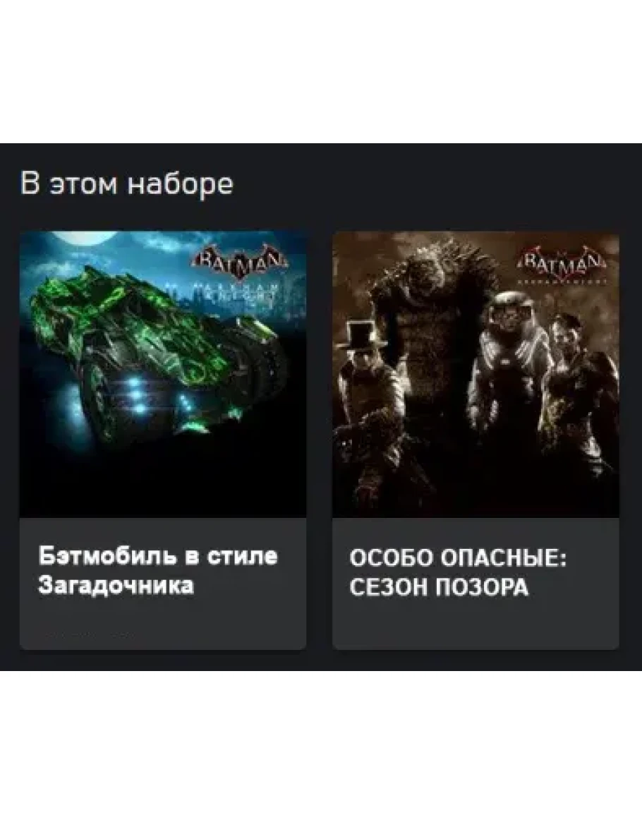 В этом грандиозном финале серии игр вы вновь встретитесь с Пугалом, который вернулся в город, чтобы объединить самых отъявленных суперзлодеев, включая Пингвина, Двуликого и Харли Квинн. Испытайте новый бэтмобиль в стиле Rocksteady.