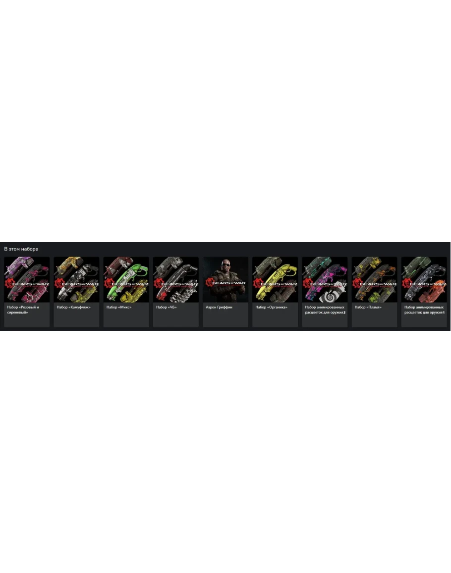 Эпохальная игра Gears of War возвращается — потрясающе переработанная и модернизированная для Xbox One и XBOX Series X|S! В комплекте: игра, элитный набор расцветок для оружия и персонаж для многопользовательской игры — Аарон Гриффин и др.