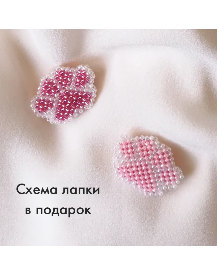 Вы получите схему "Кот" + в подарок (схема "лапка") в технике Монастырское плетение (плетение крестиком) из бисера.
