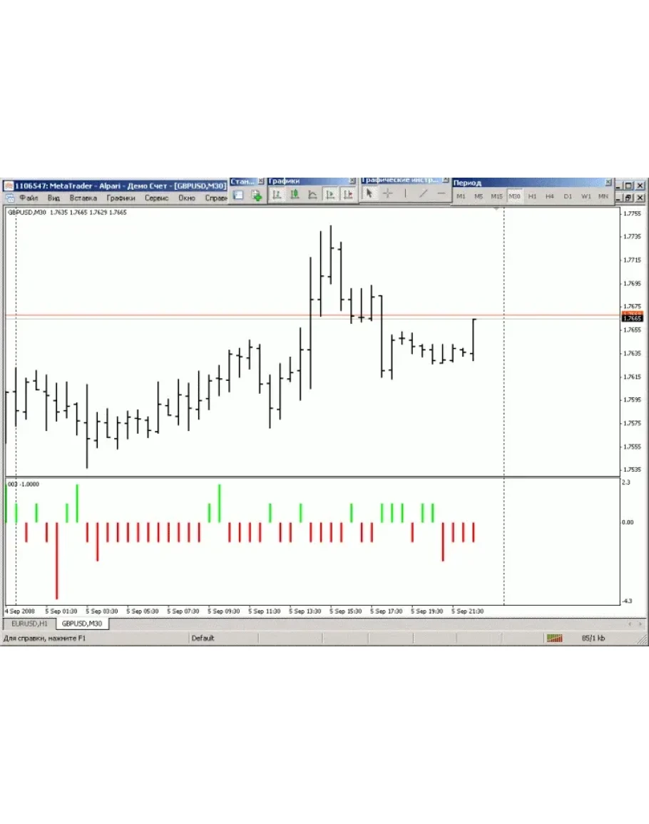 Индикатор разности цен открытия и закрытия для MetaTrader 4 в виде гистограммы указывает на разности между ценами открытия и закрытия предедущего бара с последующим, а также указывает на их напрвление.