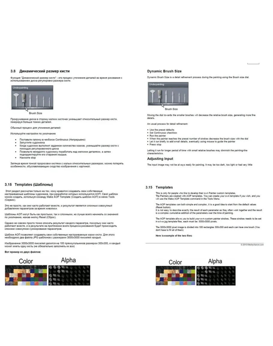 Руководство пользователя на русском языке к программе Dynamic Auto-Painter (35 страниц), включенное в раздел "Справка" интерфейса программы. Перевод с английского.