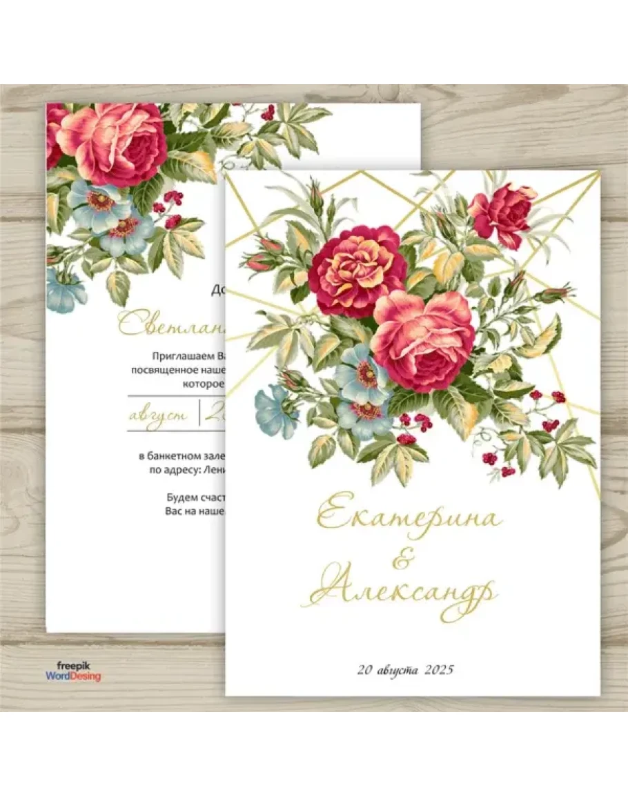 Красивый шаблон приглашения на свадьбу в формате Microsoft Word.Шаблон был сделан в программе Фотошоп и для удобства был переведен в Microsoft Word