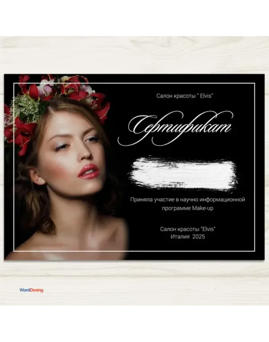 Готовый шаблон сертификата для салона красоты, спа салона, в формате Microsoft Word.
