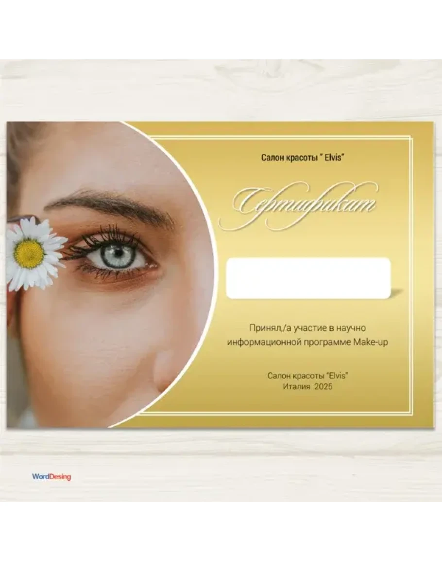 Готовый шаблон сертификата для салона красоты, спа салона, в формате Microsoft Word.