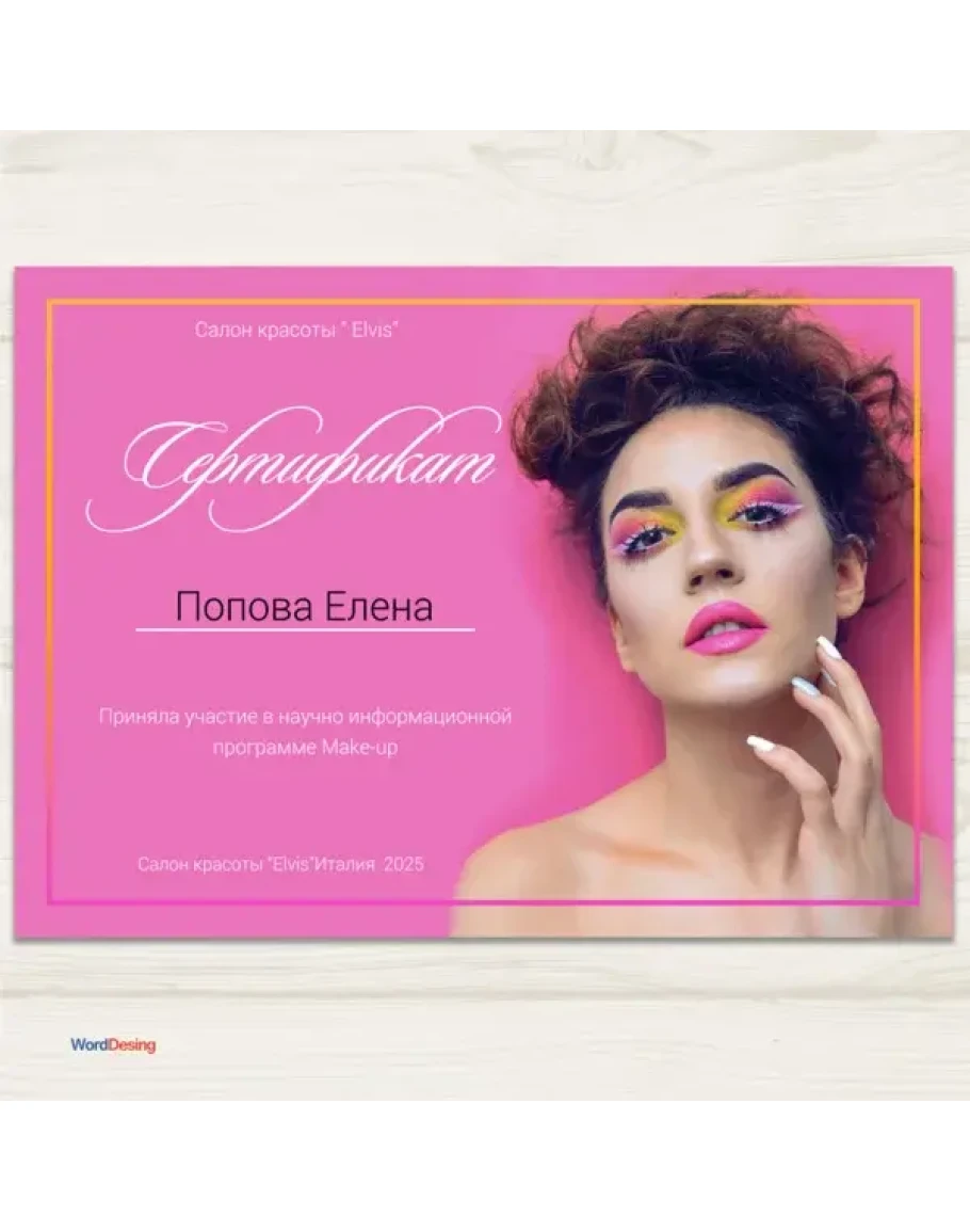 Готовый шаблон сертификата для салона красоты, спа салона, в формате Microsoft Word.