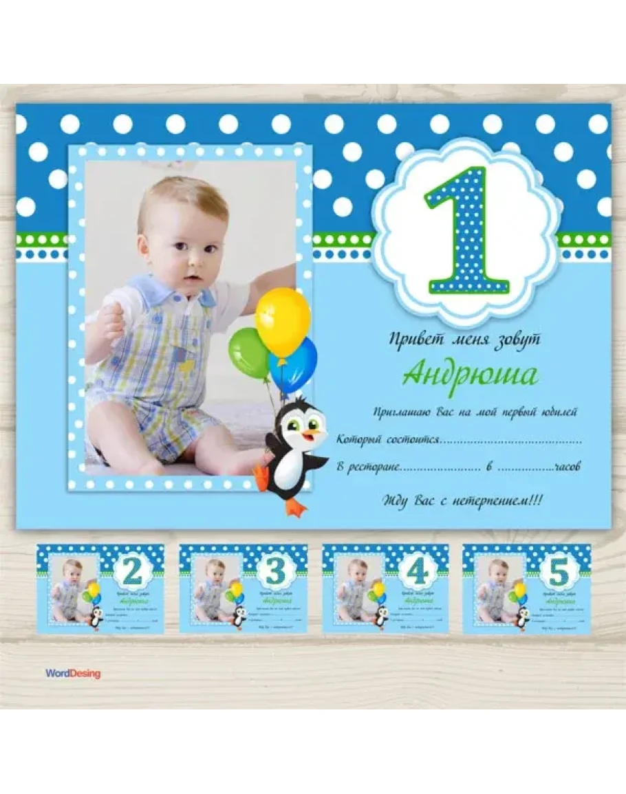 Готовые шаблоны 1-5 лет приглашения на детский День Рождения в Microsoft Word, с текстом на русском языке.