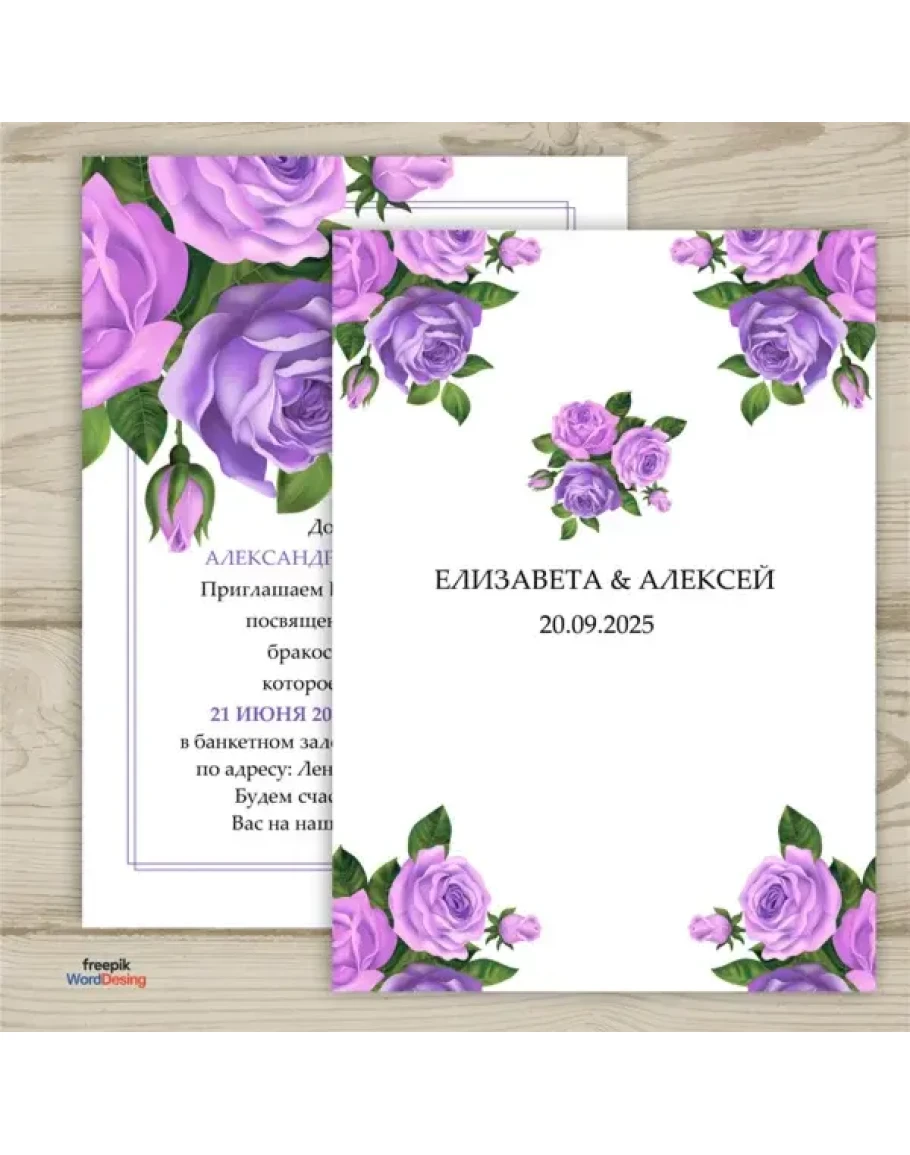 Красивый шаблон приглашения на свадьбу в формате Microsoft Word.Шаблон был сделан в программе Фотошоп и для удобства был переведен в Microsoft Word