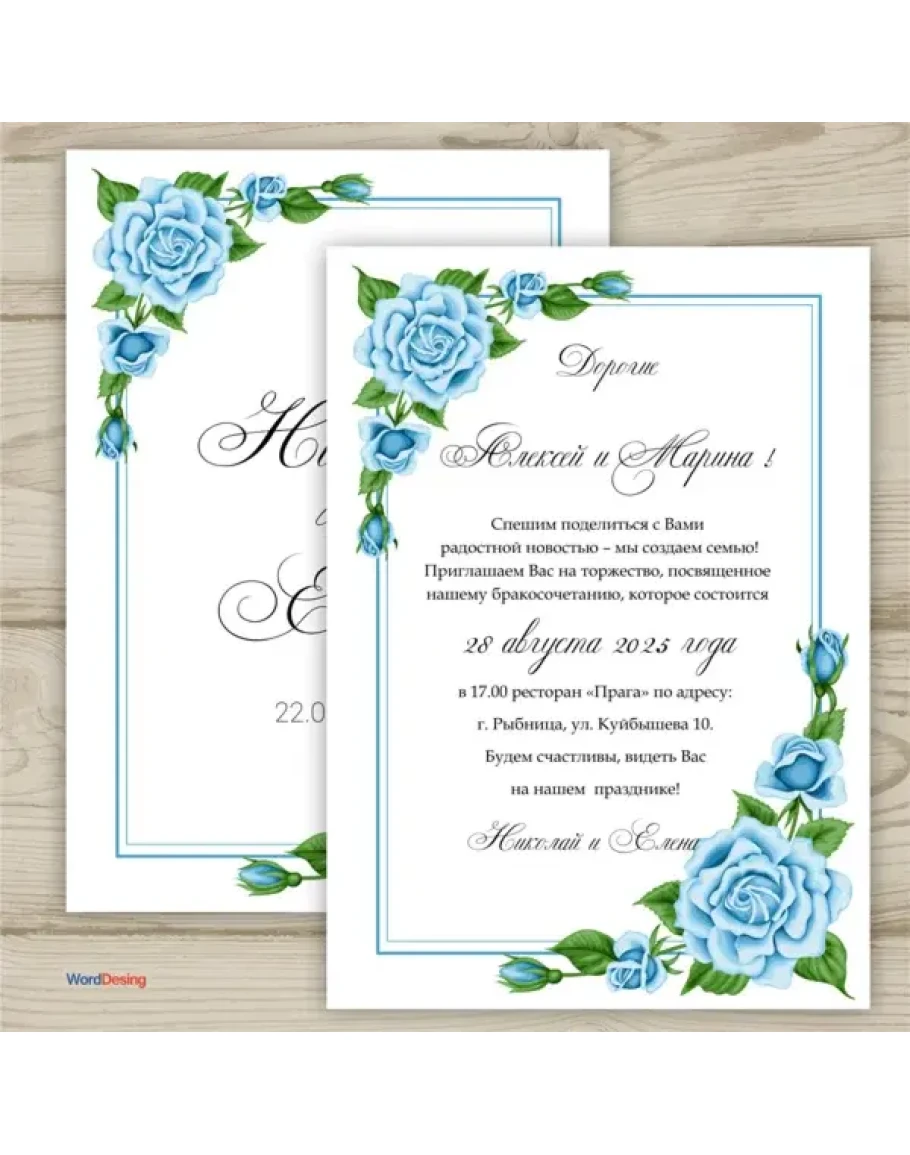 Красивый шаблон приглашения на свадьбу в формате Microsoft Word.Шаблон был сделан в программе Фотошоп и для удобства был переведен в Microsoft Word