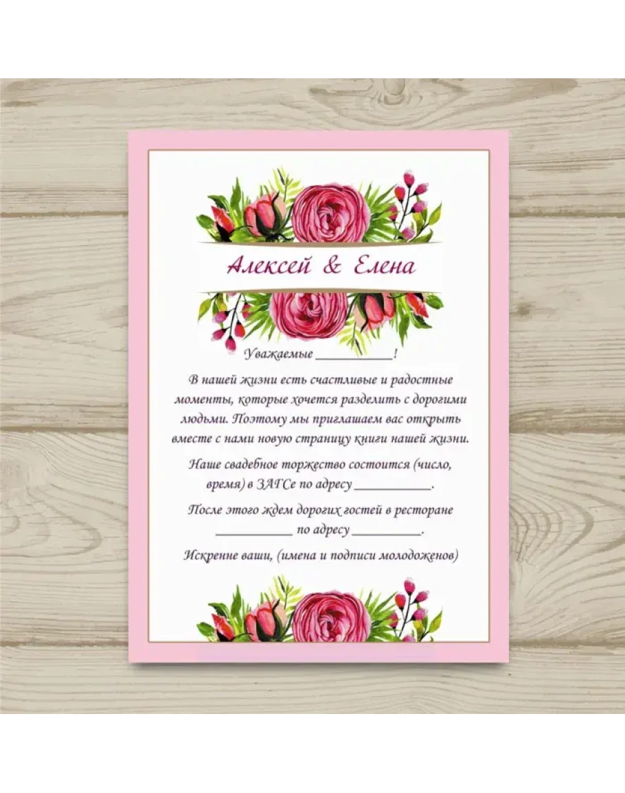 Красивый шаблон приглашения на свадьбу в формате Microsoft Word.Шаблон был сделан в программе Фотошоп и для удобства был переведен в Microsoft Word
