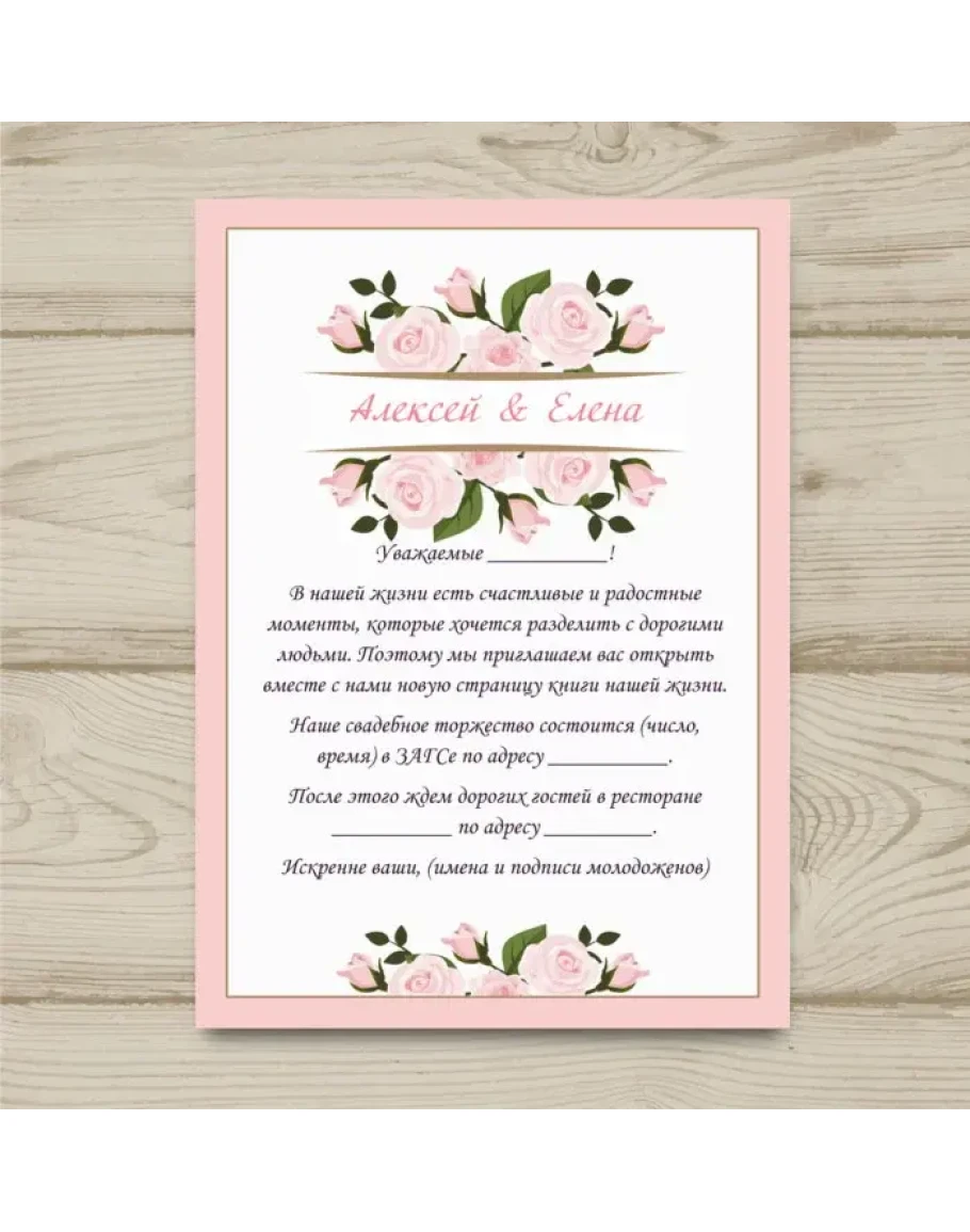 Красивый шаблон приглашения на свадьбу в формате Microsoft Word.Шаблон был сделан в программе Фотошоп и для удобства был переведен в Microsoft Word