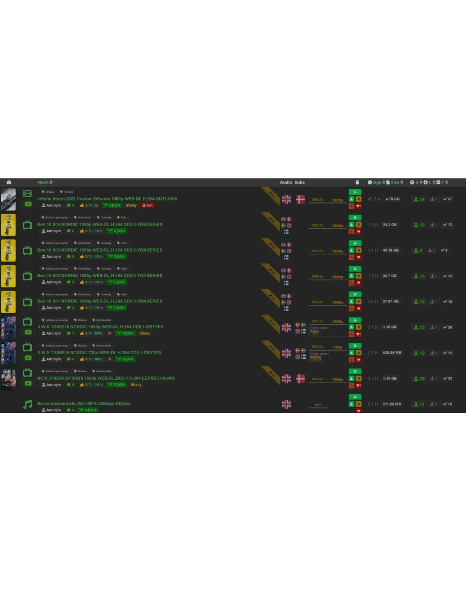 DANISHBYTES.CLUB - Это очень хороший датский торрент - трекер общей направленности, на котором вы найдёте: Фильмы, Сериалы, Игры, Книги, Музыку итд. В настоящее время на сайте насчитывается более 31 000 торрентов. Так же на трекере присутствует бонусная система, что позволяет легко поддерживать рейтинг.