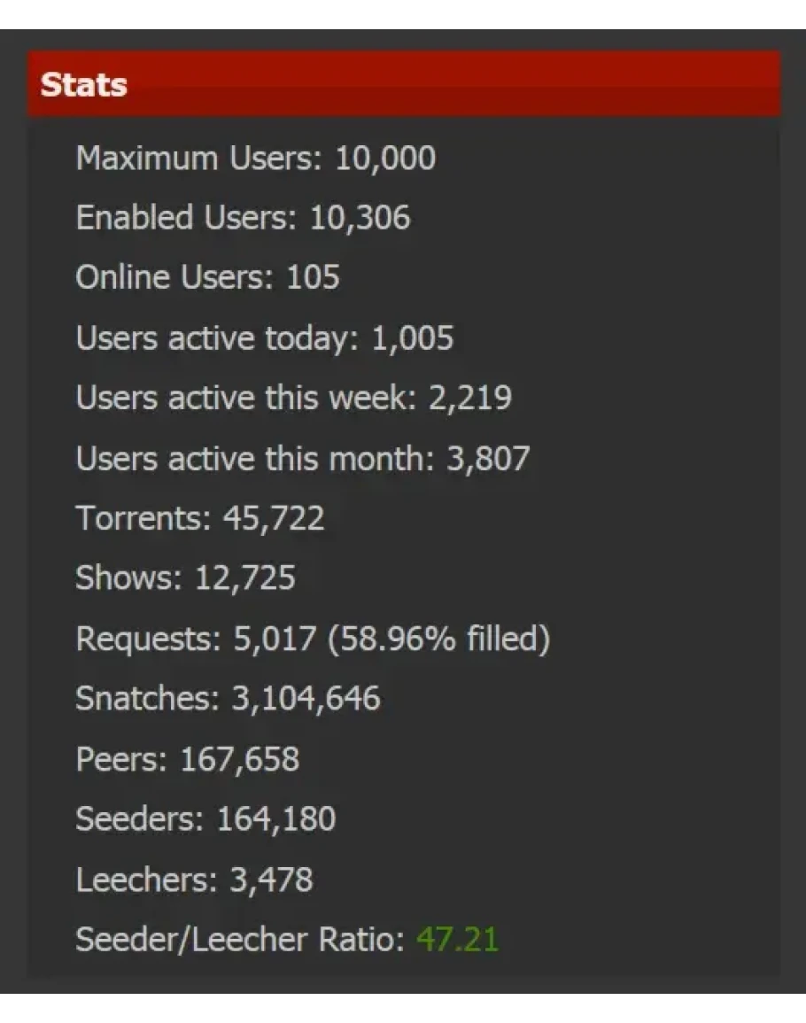 Рейтинг держать здесь непросто, так как раздач «freeleech» почти нет.