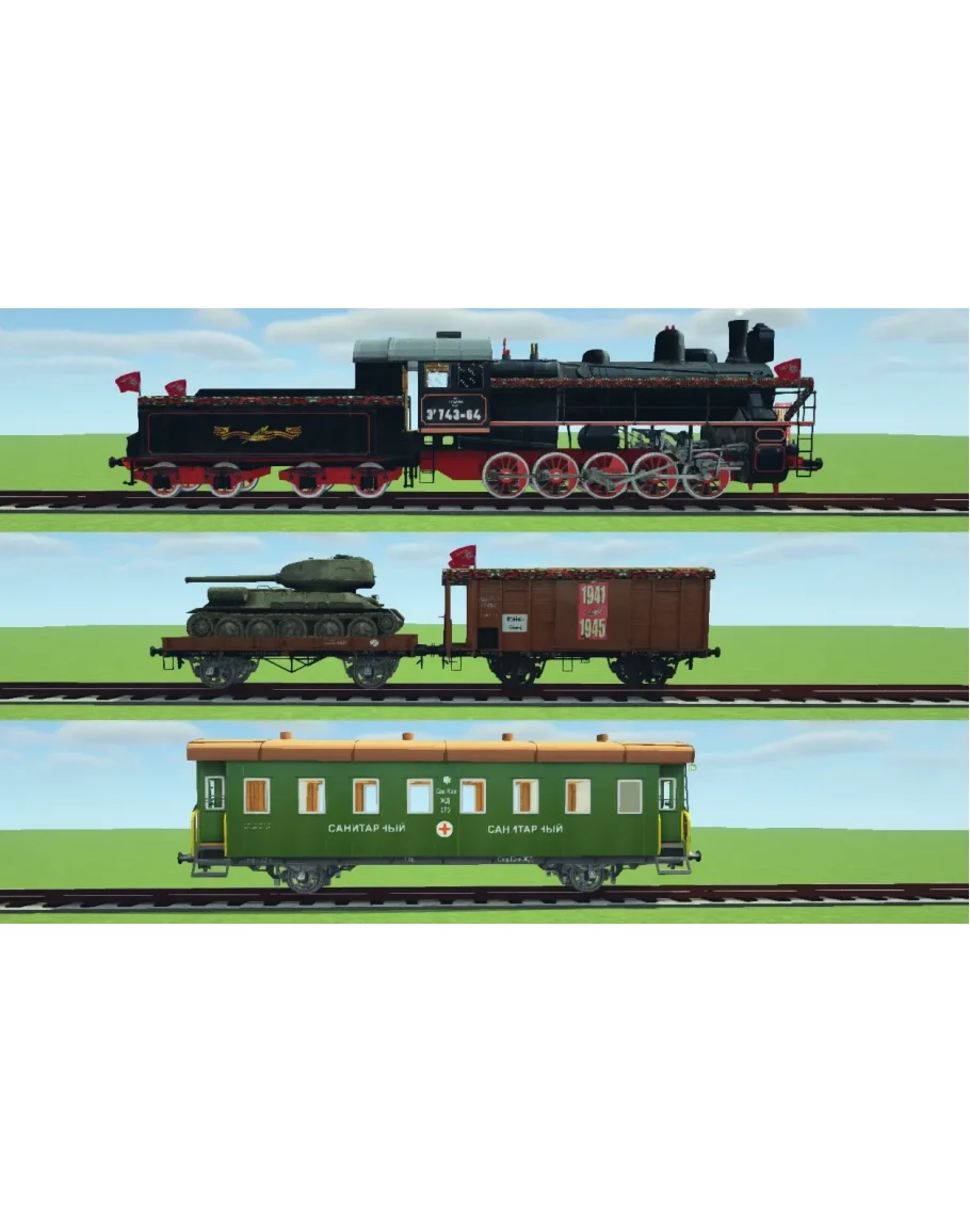 Модель поезда Победы для игры Minercraft с предустановленным модом Immersive Railroading.