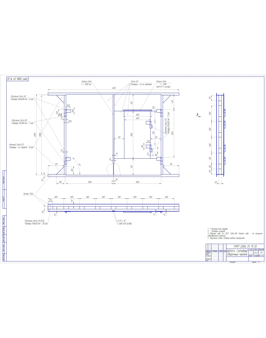 Металлические гаражные ворота с калиткой. Сборочный чертеж с деталировкой. Присутствуют все чертежи