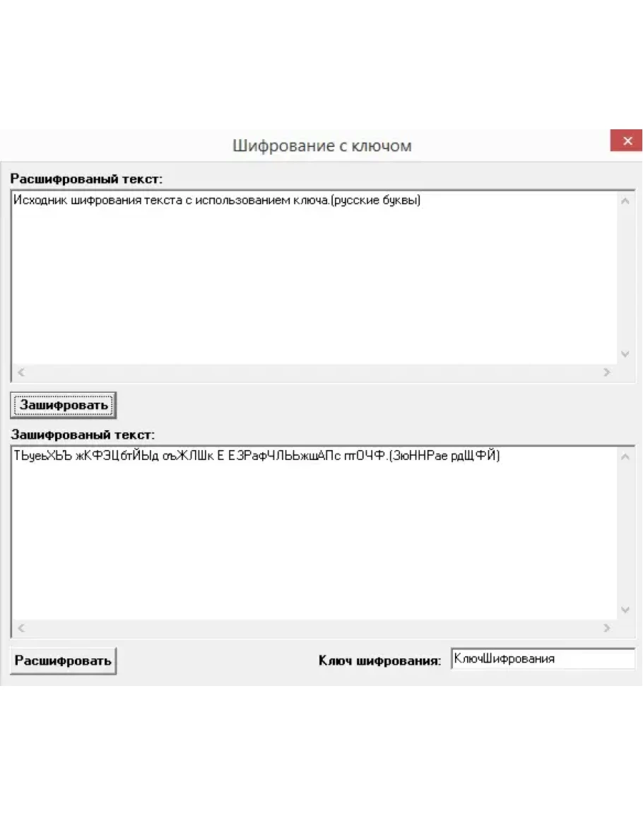 Исходник шифрования текста с использованием ключа(русские буквы) на Delphi 7.