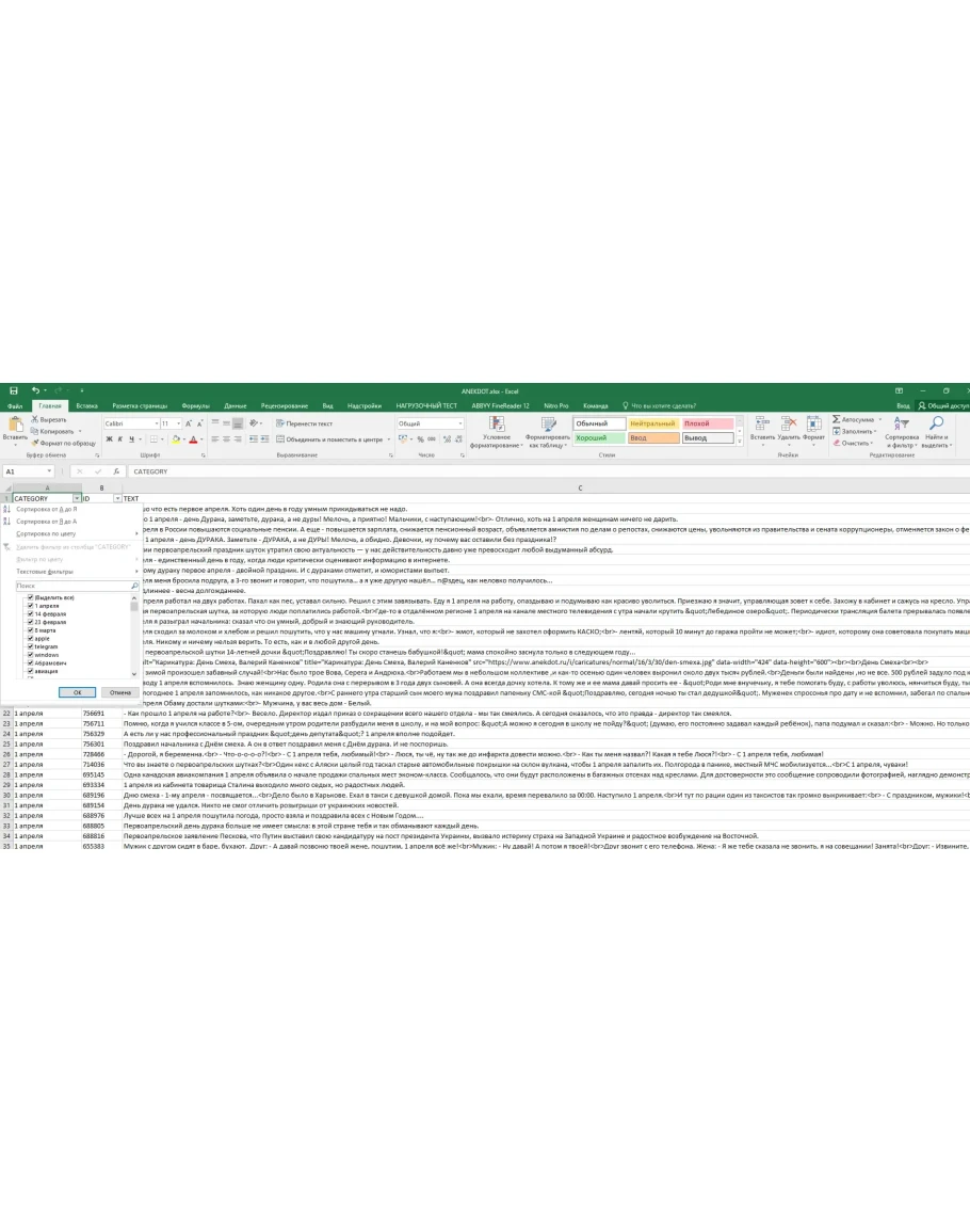 База 80 000 анекдотов, таблица находится в формате EXCEL ( XLS )