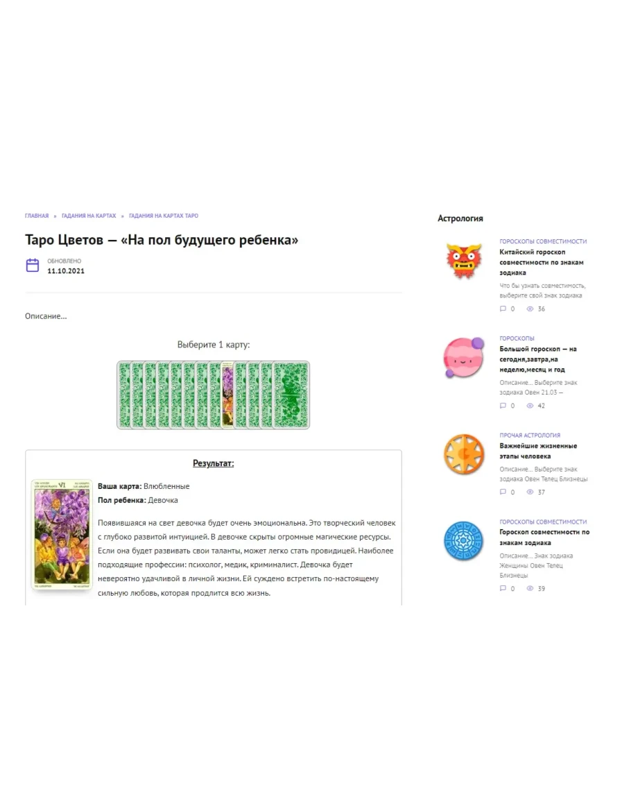 На сайте установлены PHP/JS скрипты бесплатных гаданий онлайн