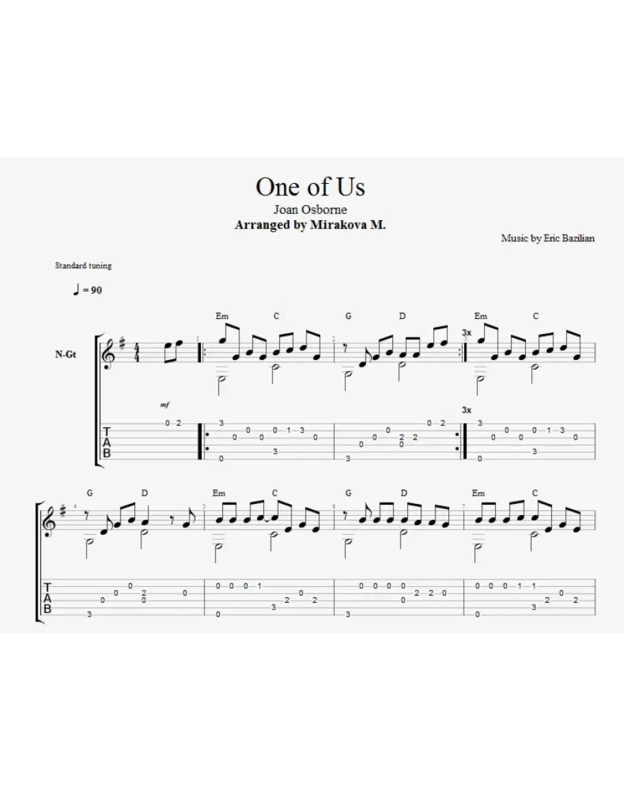 Авторская аранжировка для шестиструнной гитары от Марины Мираковой на композицию Joan Osborne - One of Us.