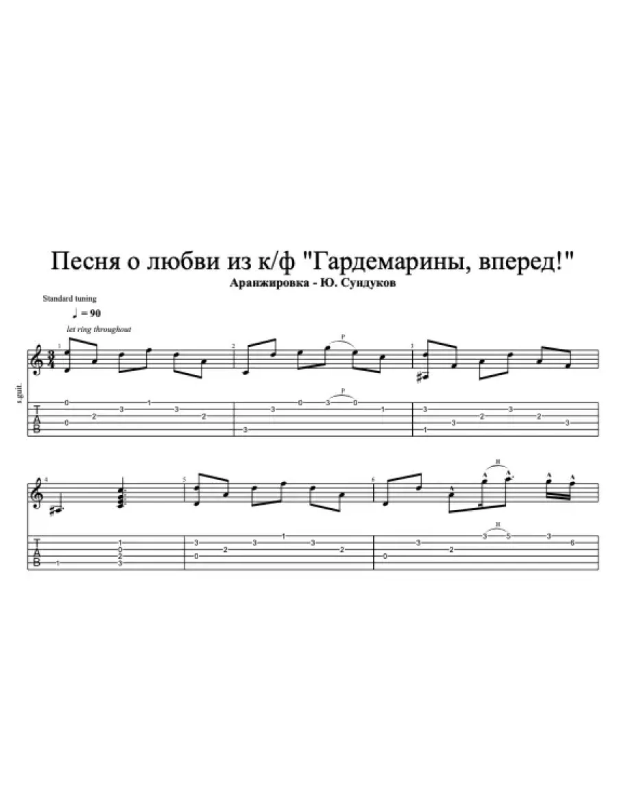 Авторская аранжировка для шестиструнной гитары от проекта Just-guitar.ru на композицию из к/ф "Гардемарины, вперед" - Как жизнь без весны.
