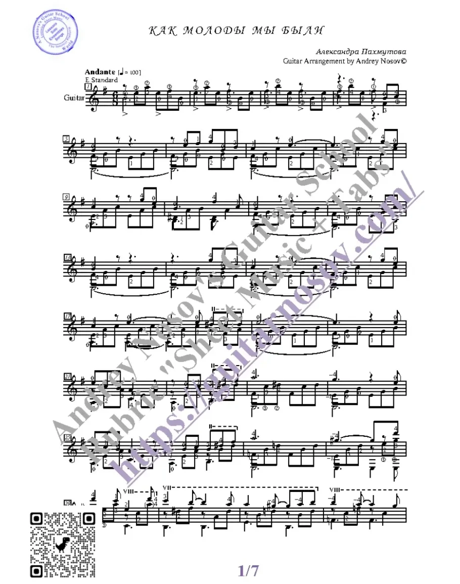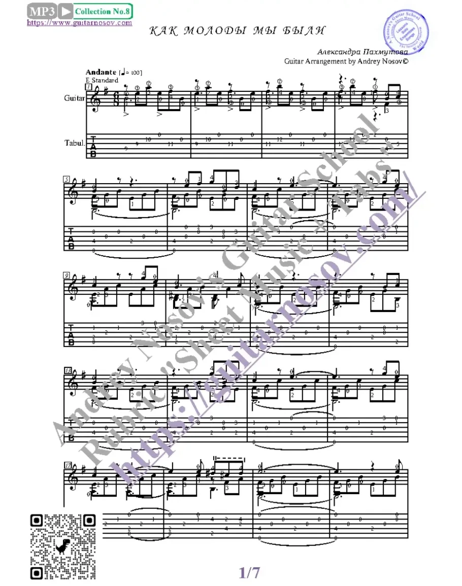 Кликните "Подробнее" для получения дополнительной информацииВашему вниманию предлагается композиция "Как молоды мы были (А.Пахмутова)", предназначенная для исполнения на 6-ти струнной гитаре СОЛО. Запись выполнена нотами, сопровождена подробнейшей аппликатурой и продублирована табулатурой.