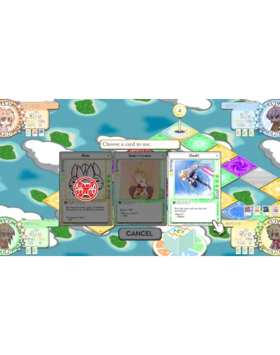 100% Orange Juice is a digital multiplayer board game populated by developer Orange Juice's all-star cast. Characters from Flying Red Barrel, QP Shooting, Suguri and Sora come together with all-new characters to duke it out... with dice.