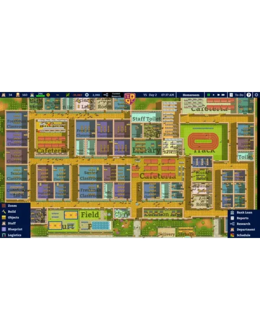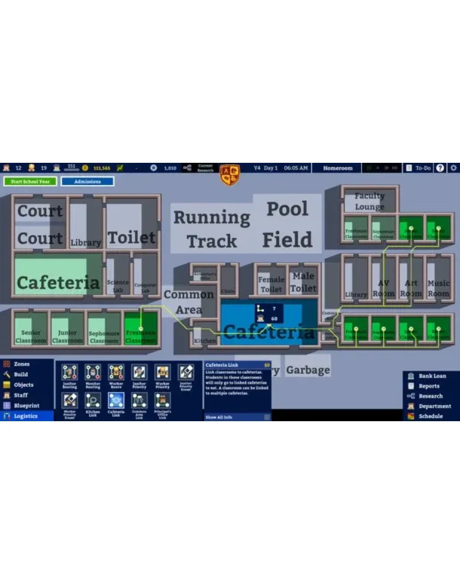 Проектируйте, стройте, управляйте старшей школой со всеми удобствами и с потрясающими учителями, или же ваши ученики будут ходить в туалет в кусты? Academia : School Simulator - игра по управлению школой, где решаешь ты!