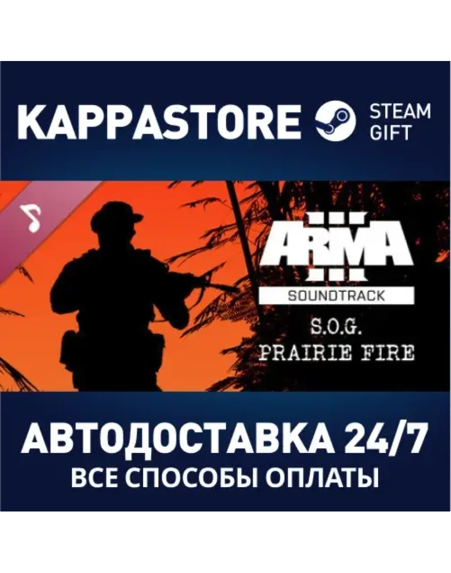 Listen to the complete Arma 3 Creator DLC: S.O.G. Prairie Fire soundtrack wherever you are and wherever you go. Relive the frantic jungle battles, screaming air support, and majestic sunrises over paddy fields and mountains with this emotionally charged soundtrack.